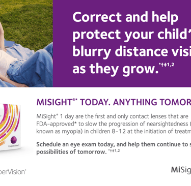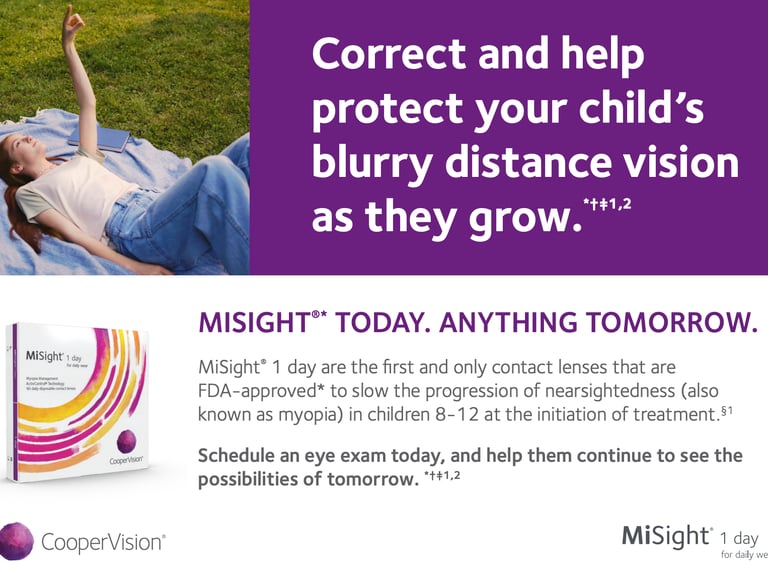 These specialist lenses are known as MiSight and they help to provide myopia control/management to help reduce a child's progression of myopia.